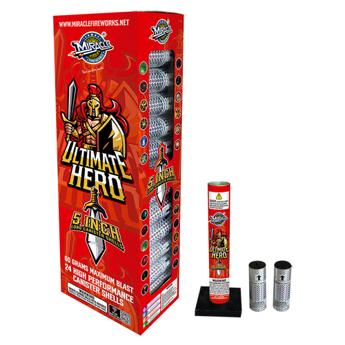 Killer 5'' long canister shells. 24 assorted effects! It includes nishiki willow, mine and neon color series. The very biggest and loudest. There is no other like it!