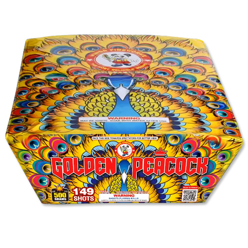 Golden Peacock features vibrant color comets with gold glittering tails ziping back and forth with a Big fan Finale. 149 shots - Wow!