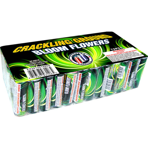 Crackling Ground Blooms spin very fast on the ground with 3 changing color,ending with a loud burst of crackling