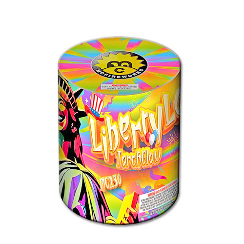 Torch Glow is a 10 shot 200g cake featuring gold Ti willow tail burst gold Ti willow with green dali;gold Ti willow tail burst gold Ti willow with orange daliahs