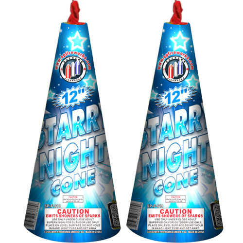 Starry Night 12 inch cone fountains with lots of effects that shoot really high. Duration over 35 seconds.